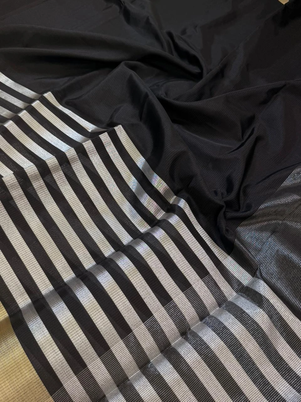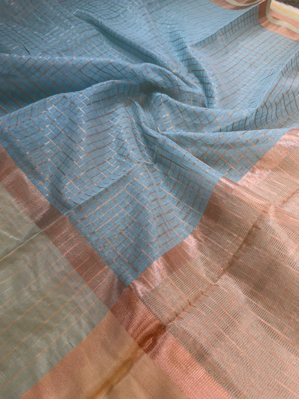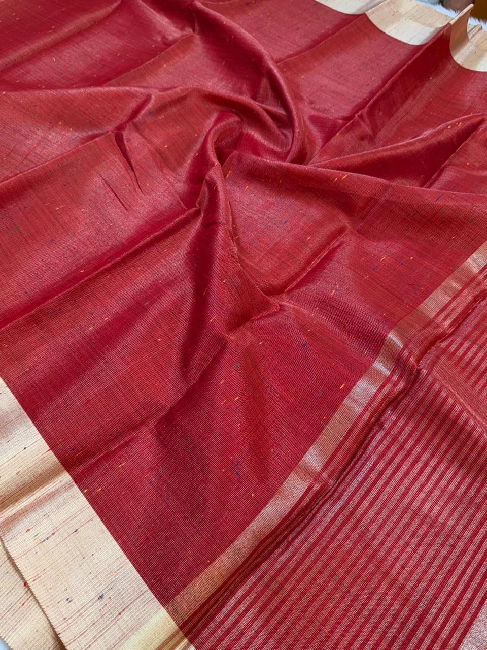 Embrace the royal charm of tradition with our Banarasi Tissue Silk Saree, a masterpiece of timeless elegance. Woven with fine silk threads blended with shimmering tissue, this saree radiates a luxurious golden sheen that enhances your festive and wedding look. The intricate zari motifs and smooth texture reflect the heritage of Banaras craftsmanship. Lightweight yet rich in appearance, this saree is perfect for special occasions, celebrations, and traditional gatherings. A true statement of grace, luxury, and culture — made for women who appreciate refined beauty.